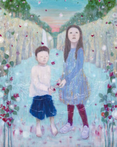 幻想的な世界にたたずむふたりの子ども──ひとりは裸足で、もうひとりは靴を履いています。そこには、ある“意味”が込められていました。