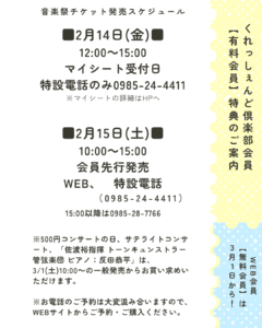 - 2月14日(金)12:00~15:00 音楽切符マイシート受付